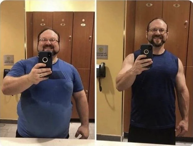 Michael went from 40%+ body fat down to 16% body fat in one year of training together, losing 121 lbs in the process. More than that, he built muscle and strength, improved his mobility, and came to a completely new understanding of what his body is capable of.